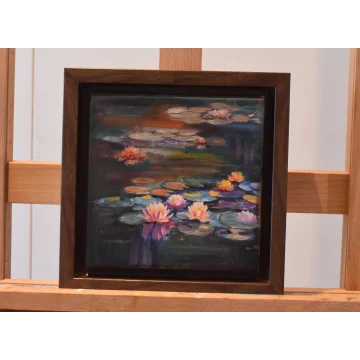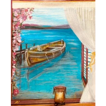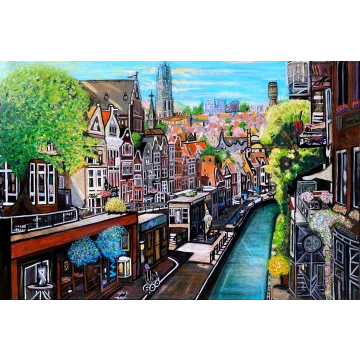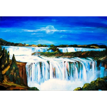 "Metatron" is een boeiende 100cm x 70cm schilderij dat een complex en prikkelend kosmisch panorama onthult. De bovenste helft van het canvas presenteert een hemelse landschap met een Aarde-achtige planeet met een levendig wit licht in de kern voorafgaand aan een maan, vergezeld door een bergachtig gebied gekroond met een piramide aan de linkerkant die naar de Poolster en het sterrenbeeld Orion wijst. Een grafietmaan, een Mars-achtige planeet en een groenachtige koepelstad verbeteren de compositie, terwijl een ster op de rand van een supernova en een nevel die doet denken aan de Melkweg dynamische elementen aan de scène toevoegen.